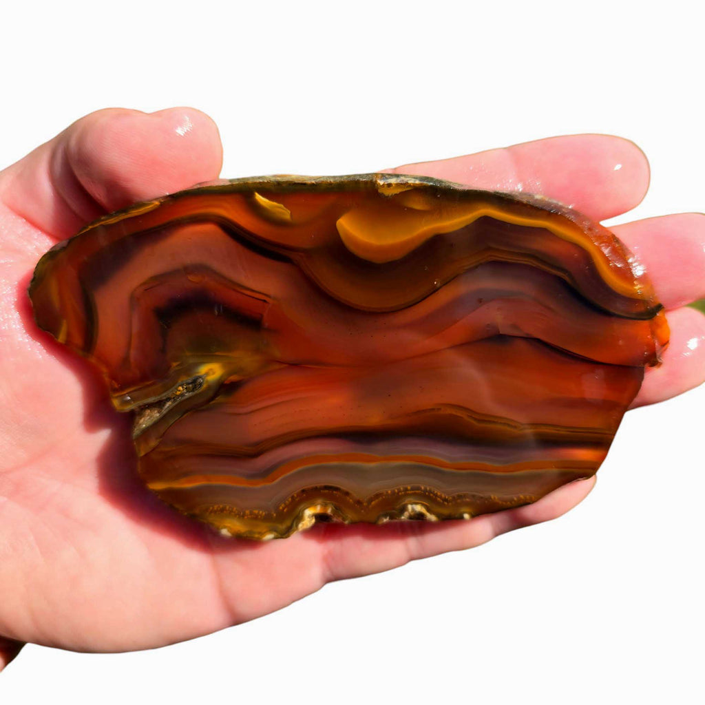 Brazilian Agate is a gorgeous agate found in the rivers of Brazil. Brazilians make great backlight pieces, take a mirror grade polish, and make excellent displays. Brazilian Agate has a very high silica content, and can come in a large spectrum of colors. This interesting Agate can be a blast to cut or work, with each one being different.