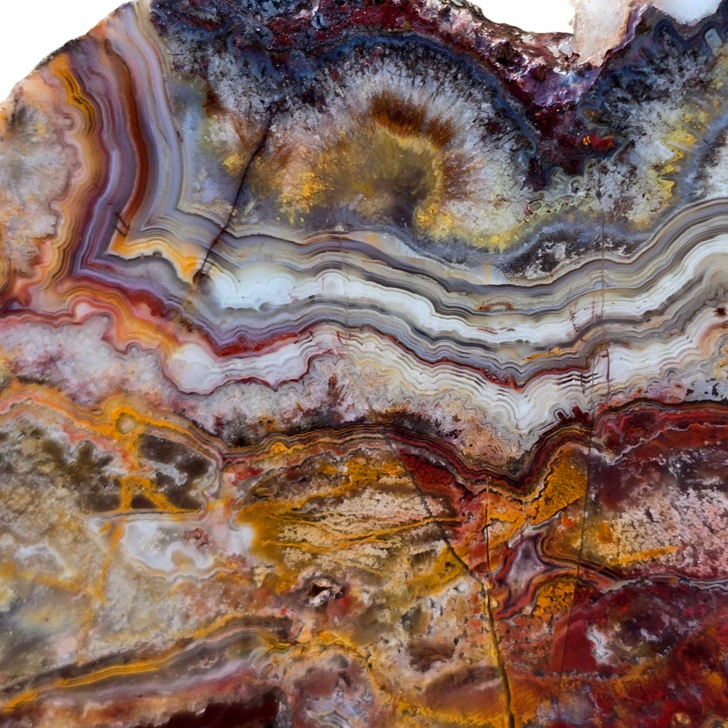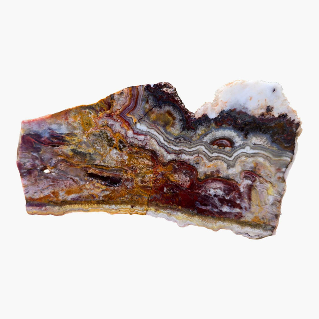 Crazy Lace Agate is a popular material from the Mexican desert, beloved by collectors for generations. This agate features intricate lace patterns in bright, vivid colors that create mesmerizing designs. It takes a quality polish and works into designer-grade cabochons for high-end jewelry and art pieces.