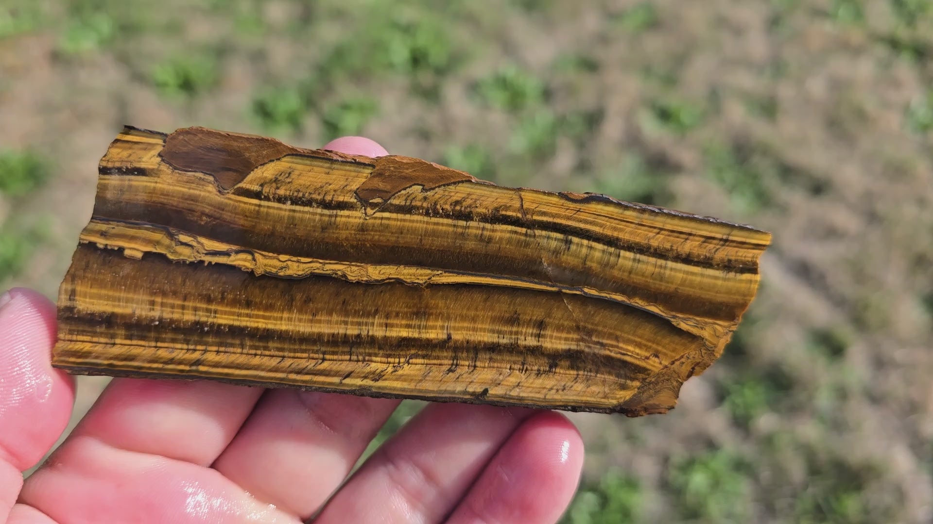 Golden Tiger Eye Slab - Parallel Flash Lines - Hematite Seam