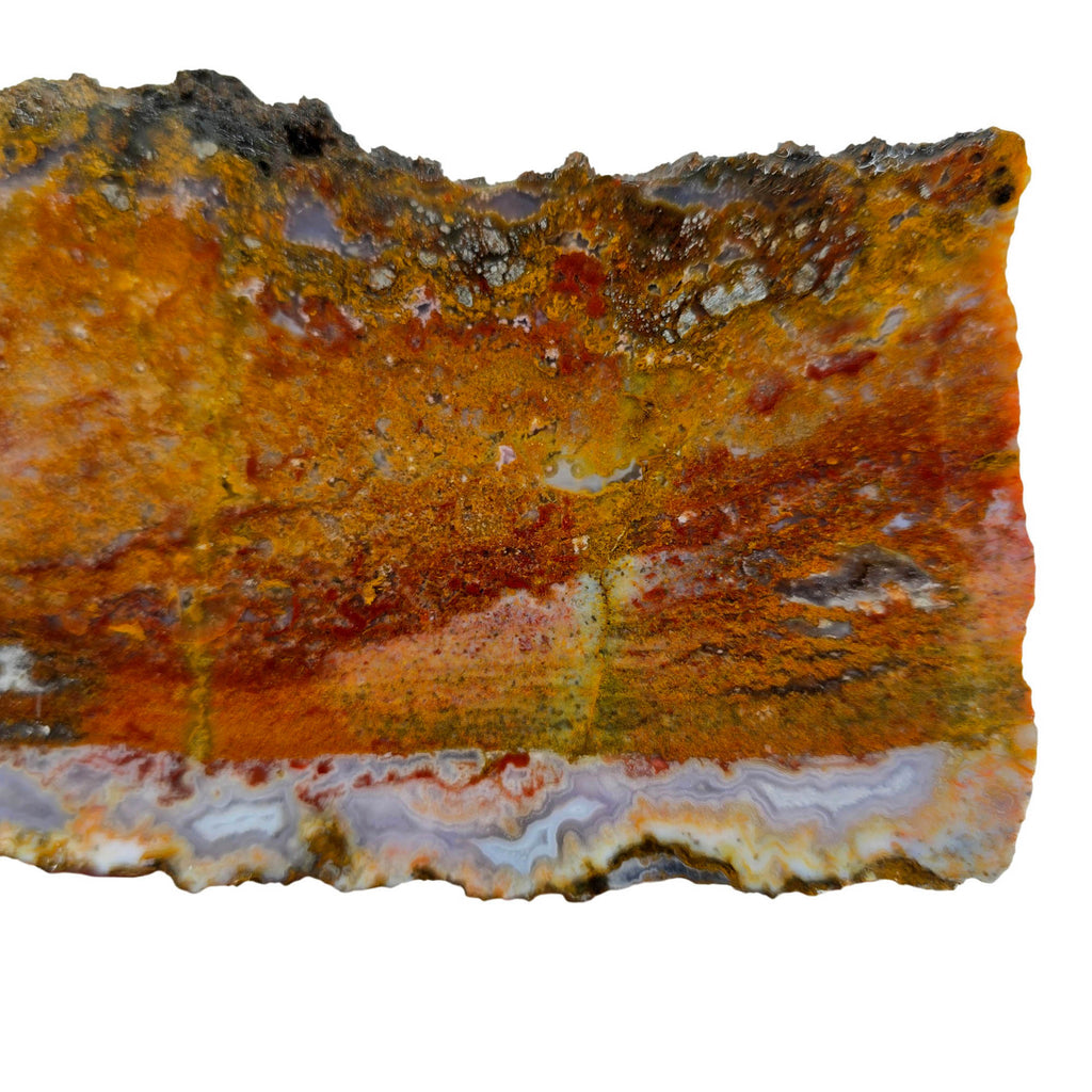 This neat slab of Agua Nueva Moss agate shows the classic static moss this material is known for. It has a seam along the top with another variety of Agua Nueva that can carry fortification patterns. It appears to have feldspar inclusions along the bottom adding natural character.