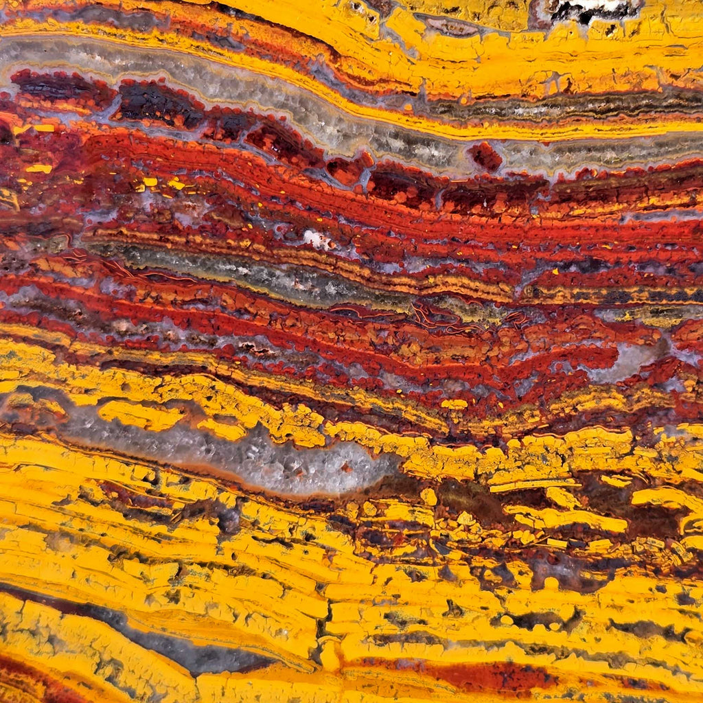 Apple Valley Jasper Slab – Bright Red with Creamy Gold Quartz – Sahara Stromatolite Paint Stroke