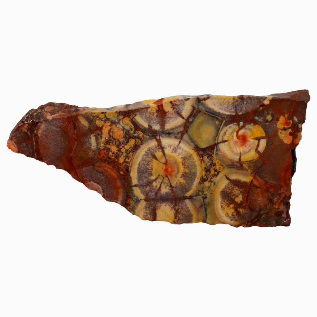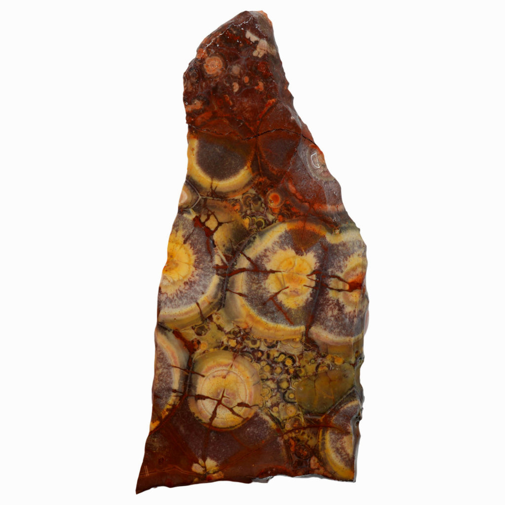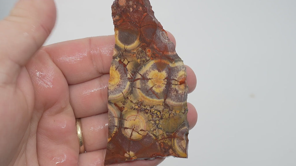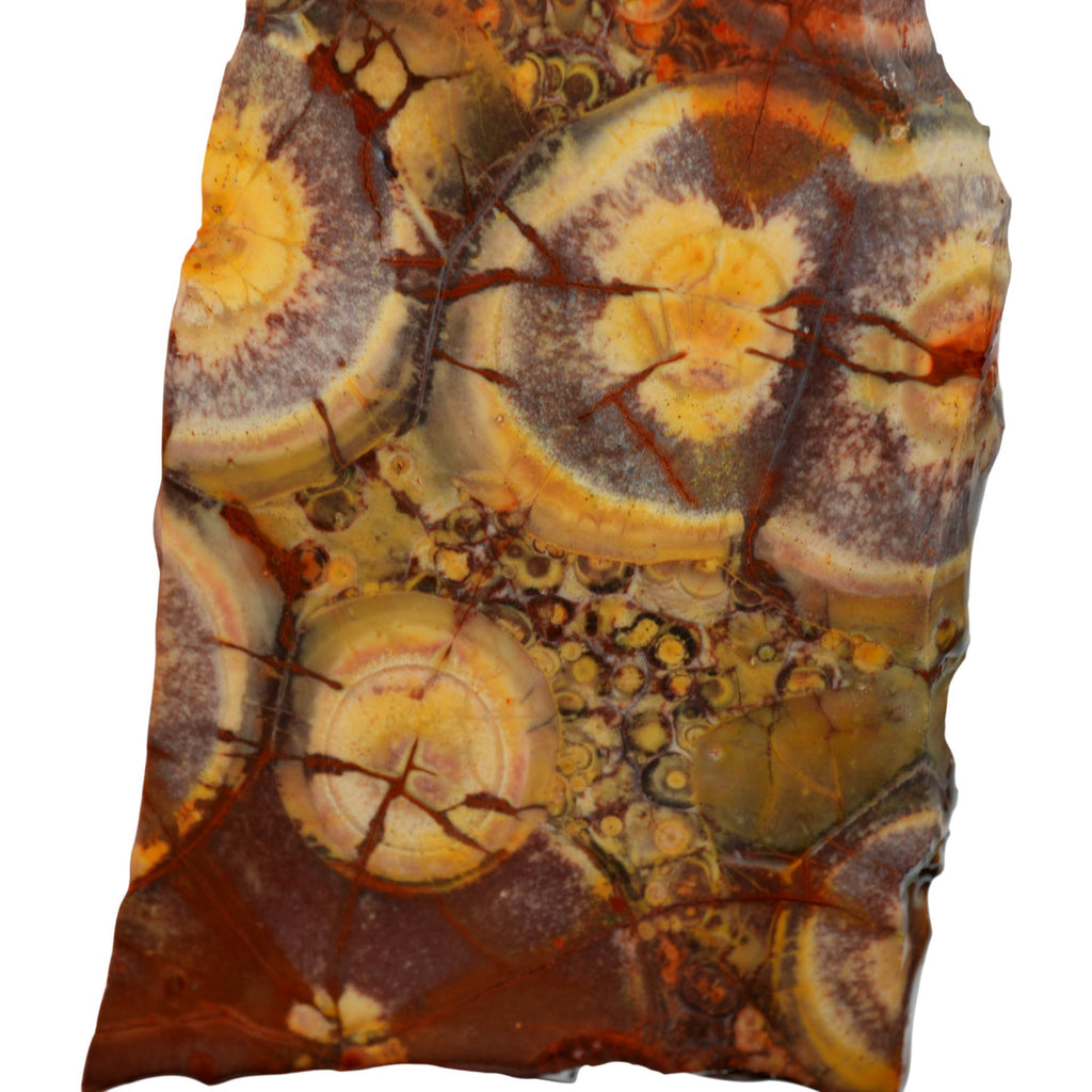This stunning old stock slab of Birdseye Rhyolite features a gorgeous orb-like pattern with a high silica content making it very solid. This slab is going to produce some spectacular cabochons of this nearly impossible to find original deposit material from Mexico.