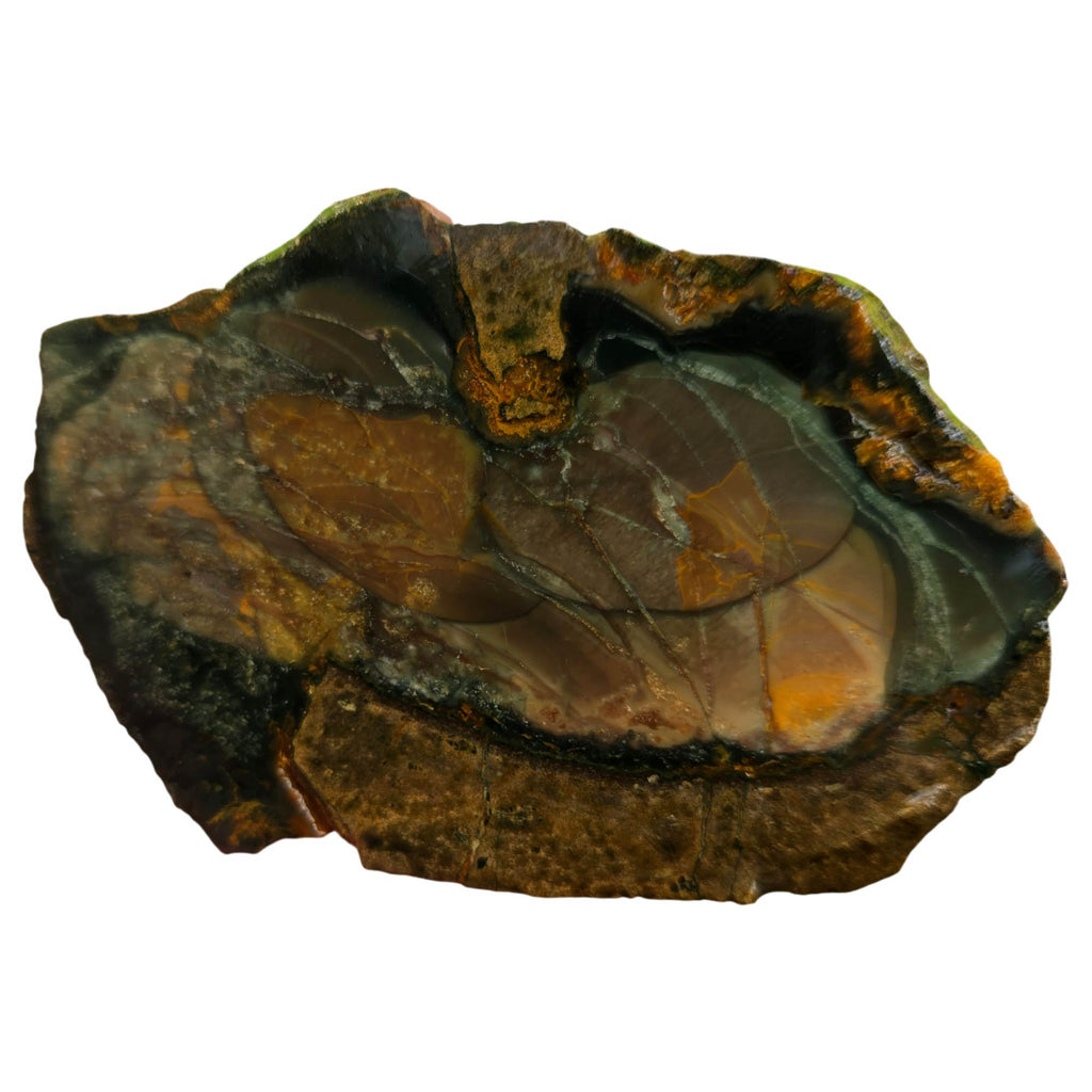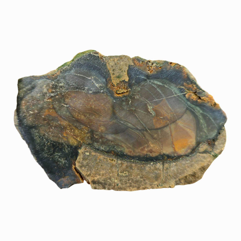 This Blue Mountain Jasper features multiple orbs with a beautiful array of colors creating exceptional visual interest. Should make several quality cabochons or polish up as an impressive display piece.