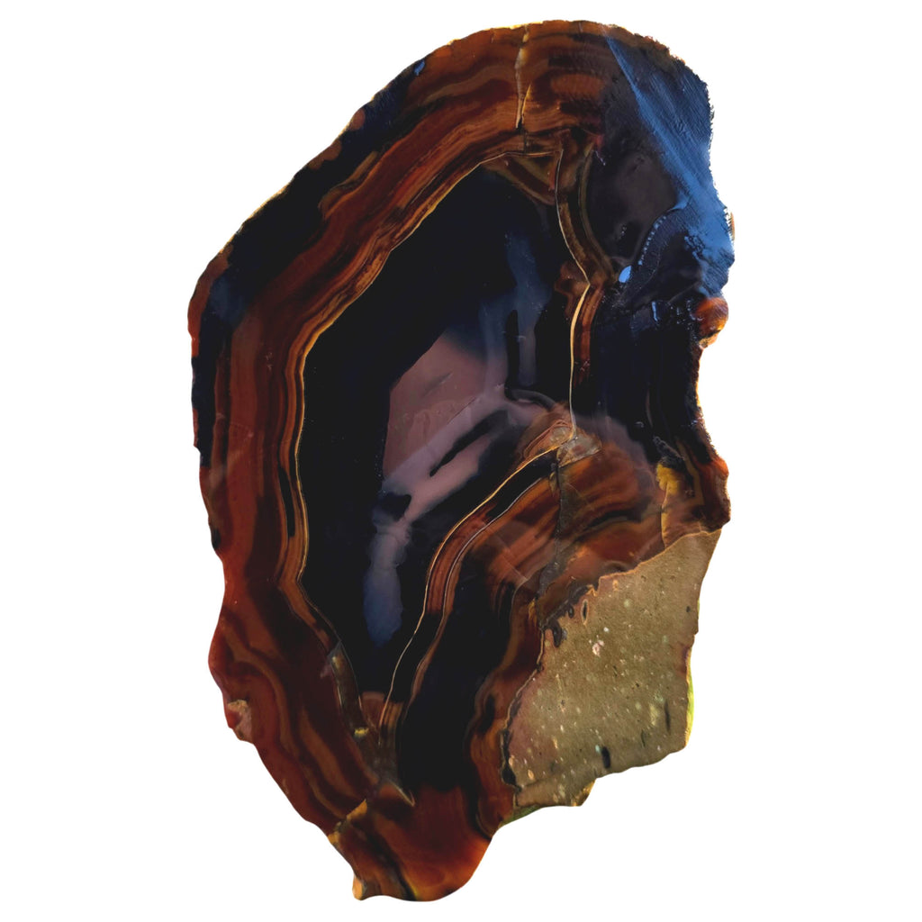 Brazilian Piranha Agate Slab – Black Agate with Orange and Red Banding – Premium Display Grade