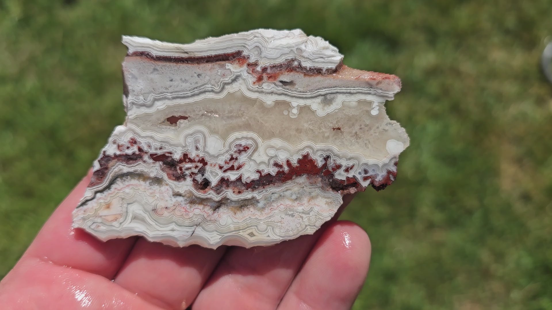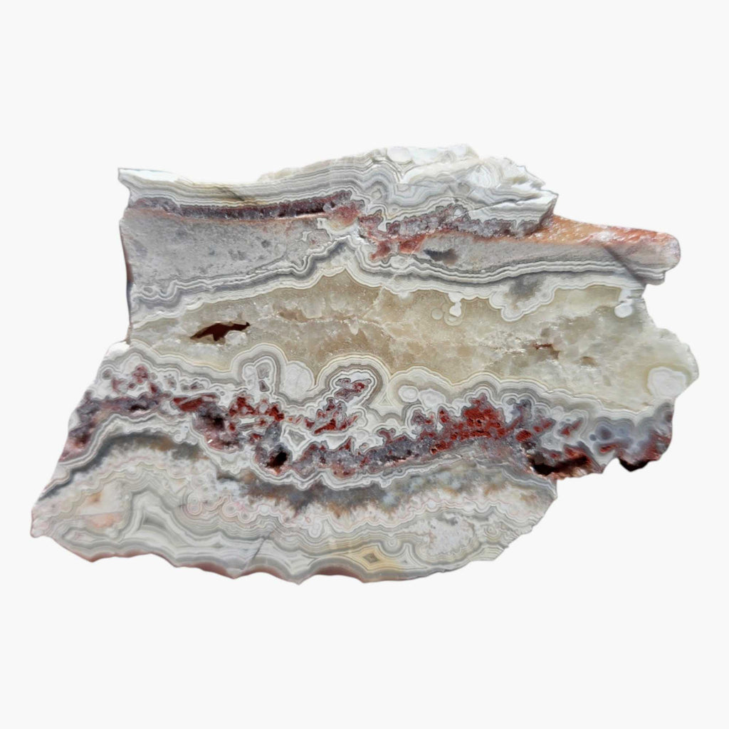 Crazy Lace Agate Slab – Frosty Whites with Quartz Calcite Center