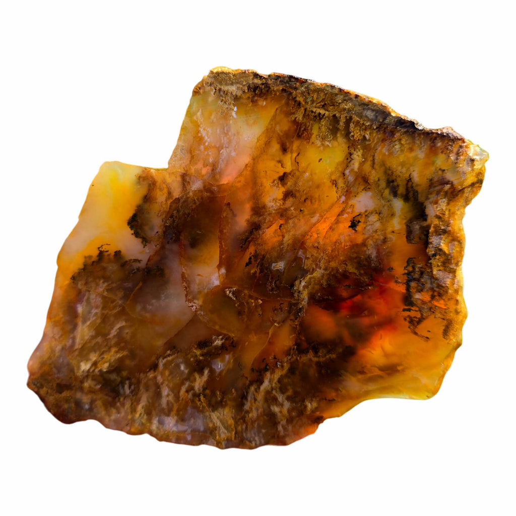 This piece features distinctive spiked plume formations in warm butterscotch hues. While it has some natural characteristics to work around, the classic pattern makes this valuable for experienced lapidarists.