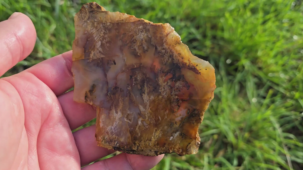 Graveyard Point Plume Agate is a plume agate from Oregon with decades of mining history. Graveyard Plume Agate has been mined for decades with an excellent reputation among collectors. It's quality agate, often with longer plumes, and tends to take a quality polish for jewelry making. This material is becoming harder to source, making it worth acquiring when available.