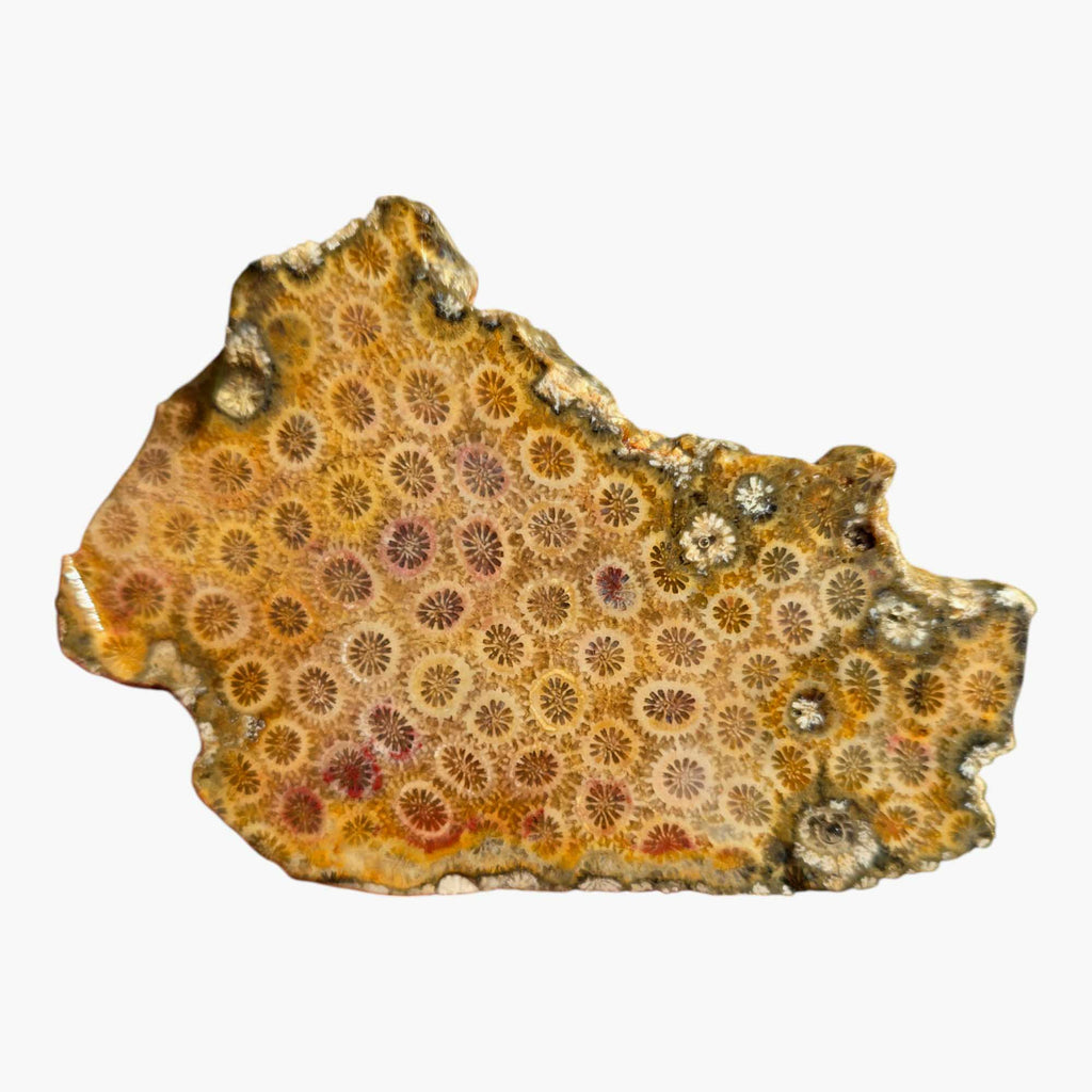 Indonesian Fossil Coral is a form of Silicated Coral of Lapidary grade. Dug in Indonesia, this gorgeous material often has white skin, and it retains its coral shape in the rough. It is well known for its starburst flowers, and when cut right, it can display them with fantastic clarity. It can make some gorgeous cabochons and take a gloss polish. It can also have various colors, with butterscotch or white being the most common. This is a chance to get an interesting lapidary-grade fossil with a unique ancient story.