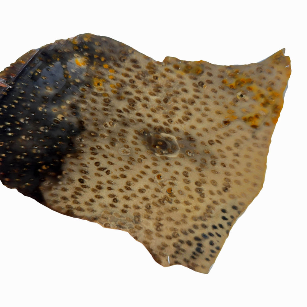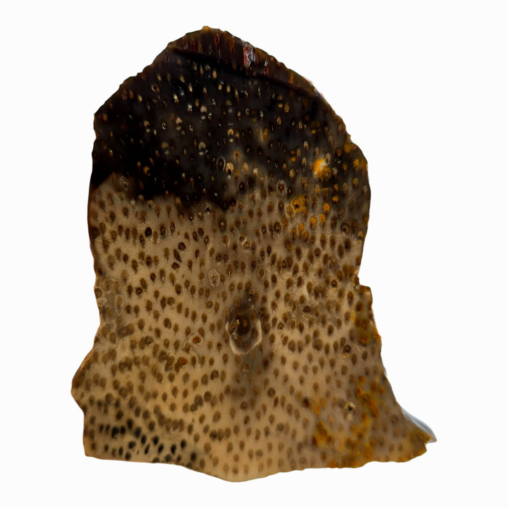 This fascinating slab of Indonesian Petrified Palm Wood displays excellent palm pattern with pinpoint detail throughout. Some of the palm spots contain crystal inclusions that could give cabochons a nice natural look. This piece also makes a fascinating scientific display specimen showcasing ancient palm tree structure.