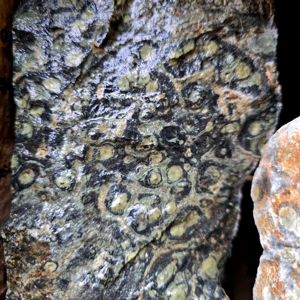 Kambaba Jasper is a gorgeous green stromatolite fossil from Madagascar. It features orb-like structures and swirling patterns created by ancient cyanobacteria colonies, making it one of the oldest known fossils on Earth—estimated to be over 3 billion years old. Also known as Crocodile Jasper, this material is a striking, collectible stone favored by both lapidary artists and fossil lovers.