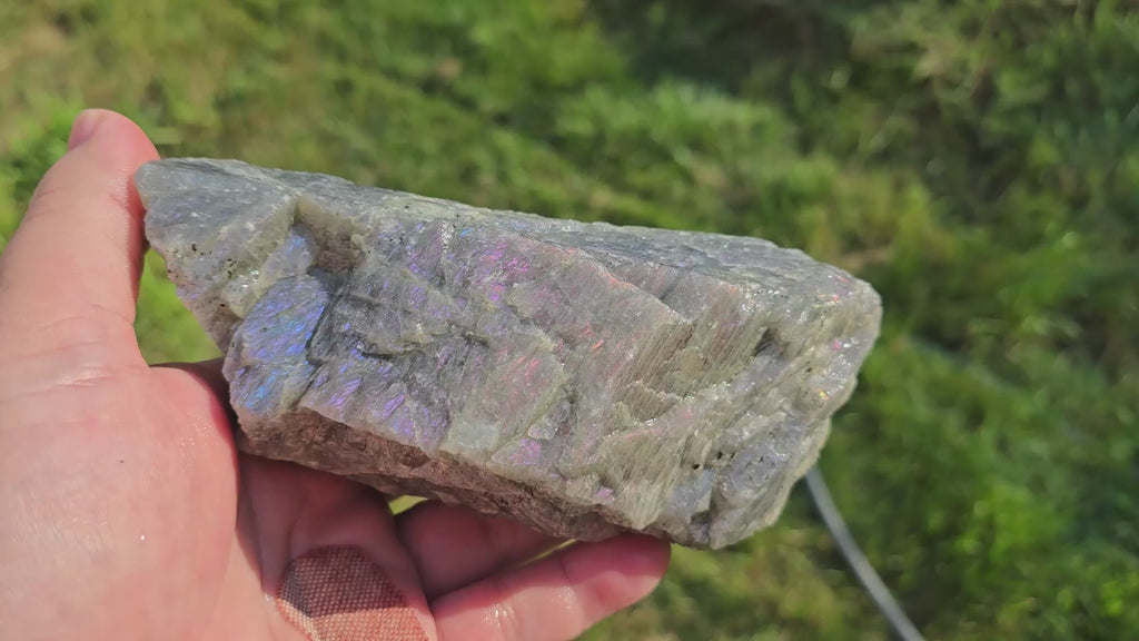 WHAT MAKES IT SPECIAL This chunk displays baby purple, pink, and blue flash - some of the most sought-after soft spectral colors in labradorite. The size and quality make this perfect for multiple slabs with exceptional flash potential for statement jewelry pieces.