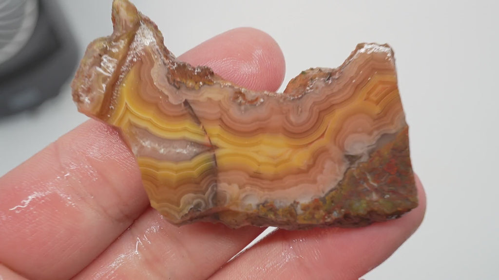 Laguna Agate, not to be confused with Laguna Lace Agate, is widely considered the world's finest banded agate. Known for displaying multiple high-contrast colors with an exceptional rate of high-grade material, Laguna Agate is a true standout in the agate world. The dominant colors are often red and orange, though specimens with blue, purple, pink, and gold are also found.