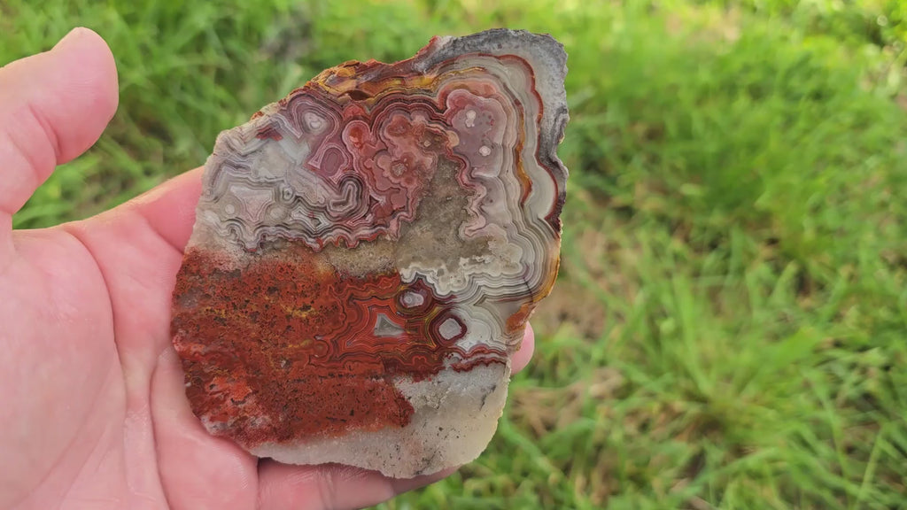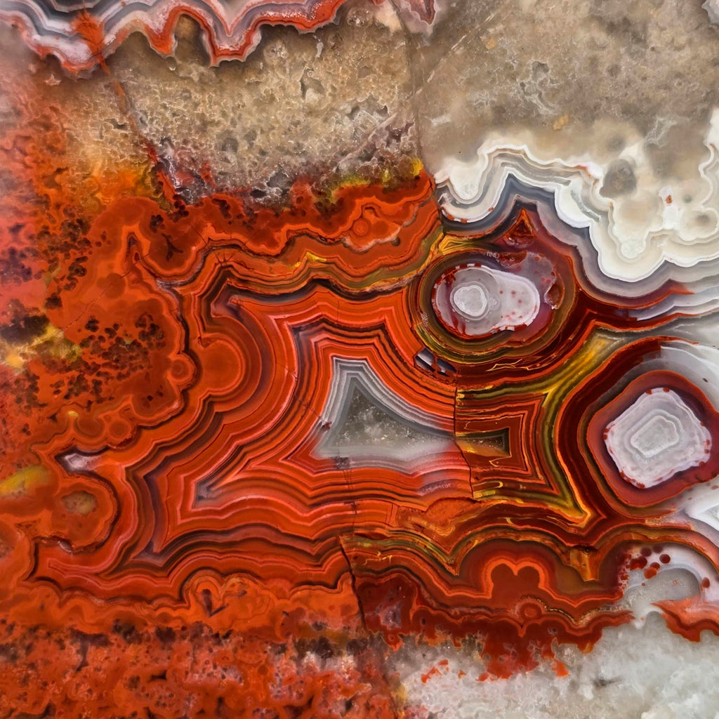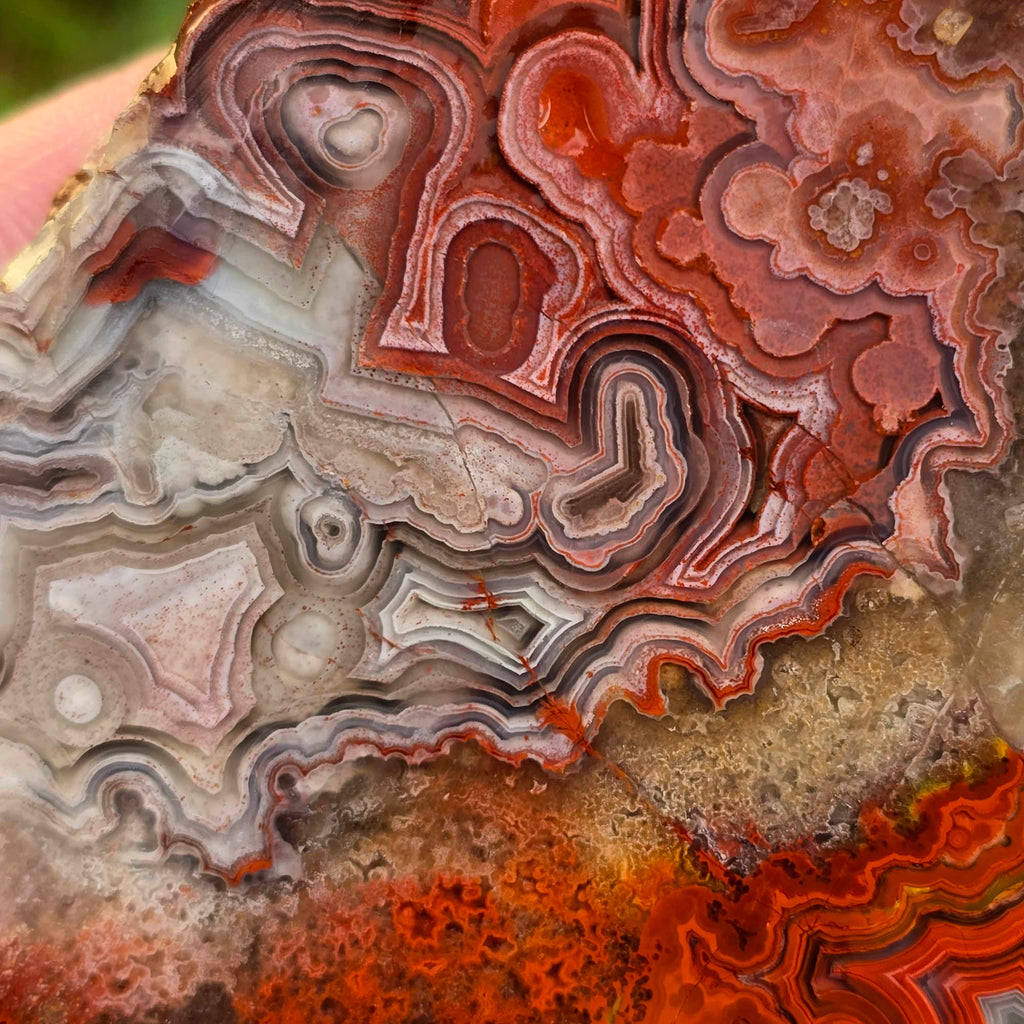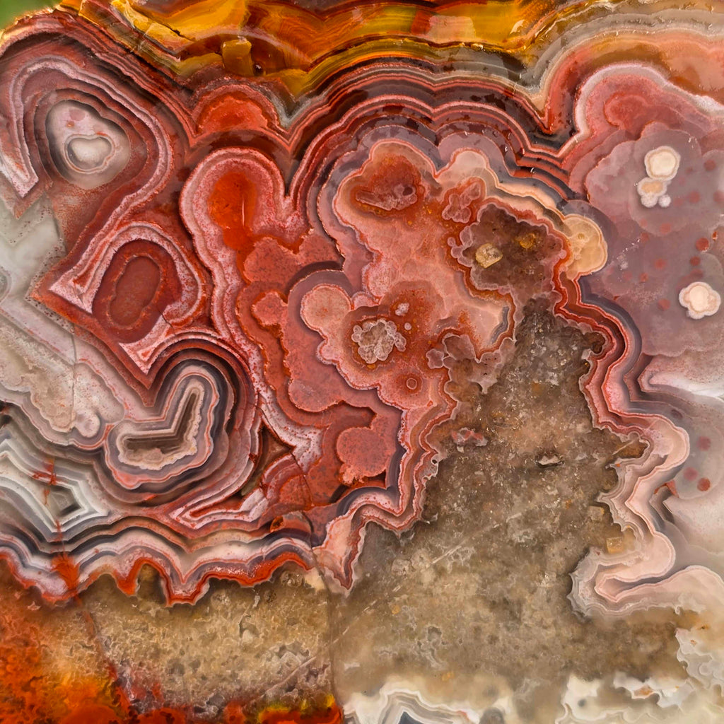 Laguna Lace Agate is a variety of Mexican lace that often has dominant red present with attractive, well-defined lace patterns throughout. It tends to be quite solid, with most deposits never having been blasted, preserving natural quality. It makes excellent cabs and is one of the most popular lace varieties on the market for good reason.