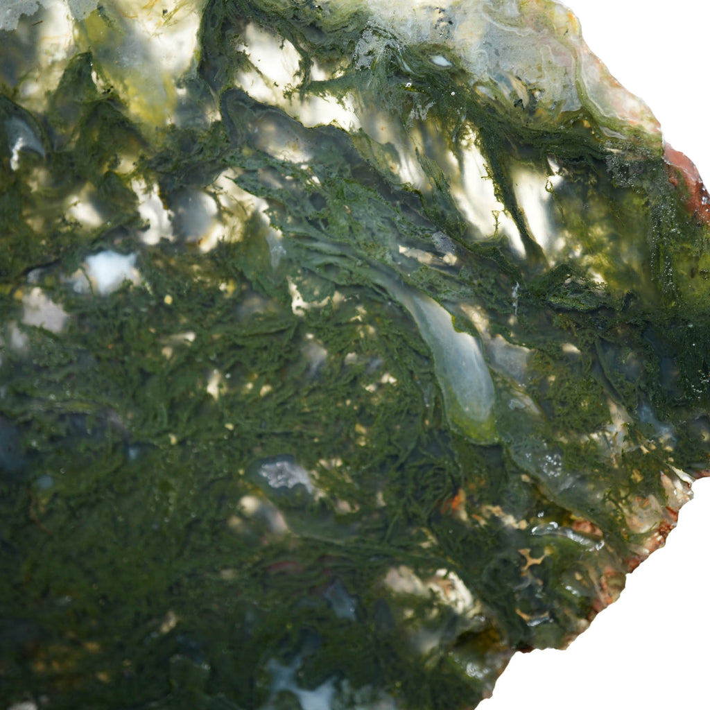 This stunning old stock slab showcases the fantastic green moss this legendary Oregon location was renowned for producing. Slabs of this size are becoming increasingly rare, making this an important piece you won't want to miss. This represents the classic definition of what made Maury Mountain the standard for moss agate.