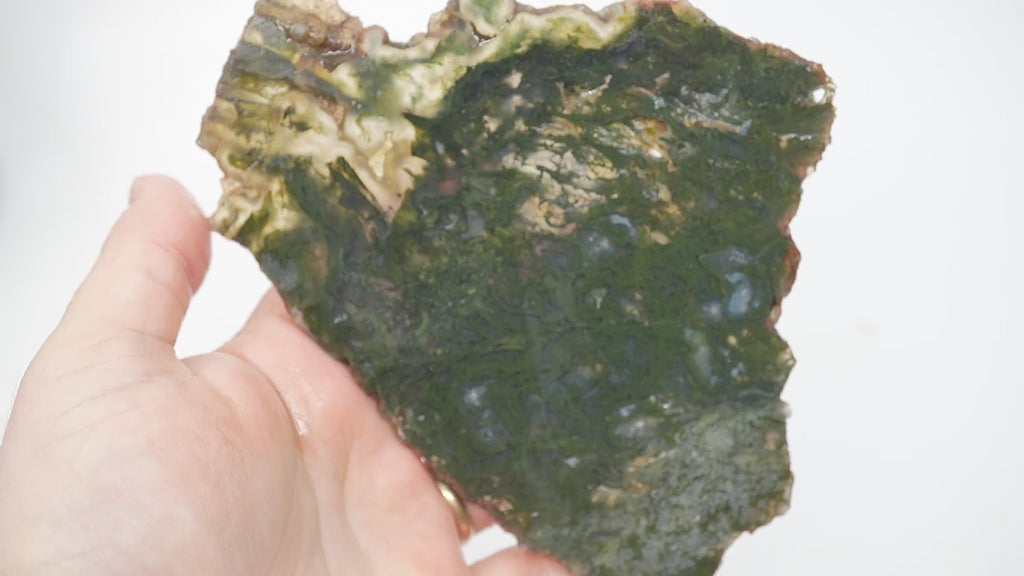 Maury Mountain Moss Agate Slab - Green Moss with Translucent Agate - Old Stock Oregon