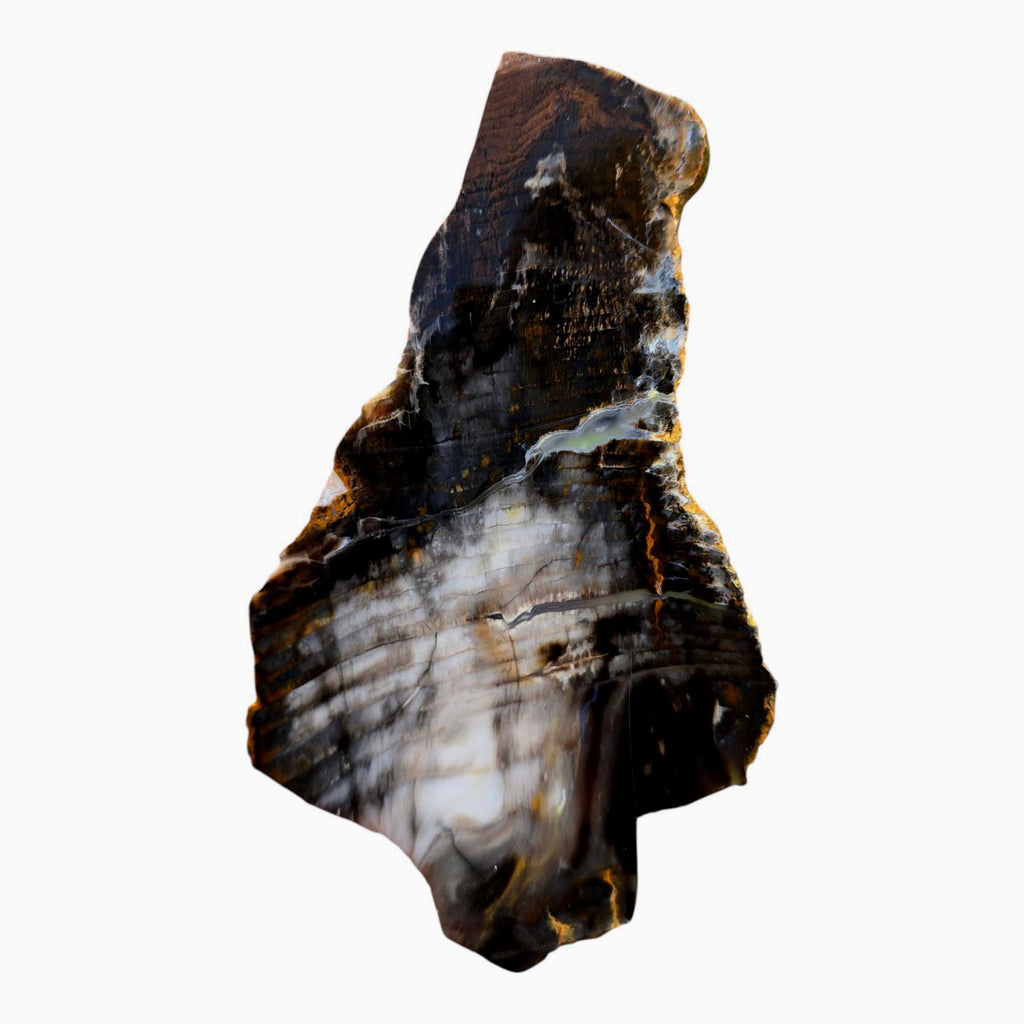 This is a unique Mystery Petrified Wood slab sourced from an estate sale in Washington State. While the exact species and collection site are unknown, it was found alongside a group of Badger Pocket Petrified Wood specimens—material typically associated with the Yakima Firing Range in central Washington.