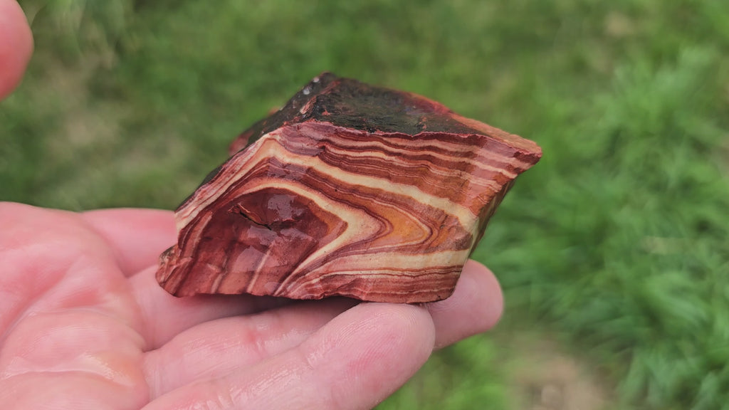 This is a beautiful trimmer chunk of Nevada Wonderstone, showcasing the iconic swirling flow and earthy banding this material is known for. Though smaller in size, it has excellent potential for slabbing and cutting designer cabochons that show off Wonderstone’s dreamy movement and natural style.