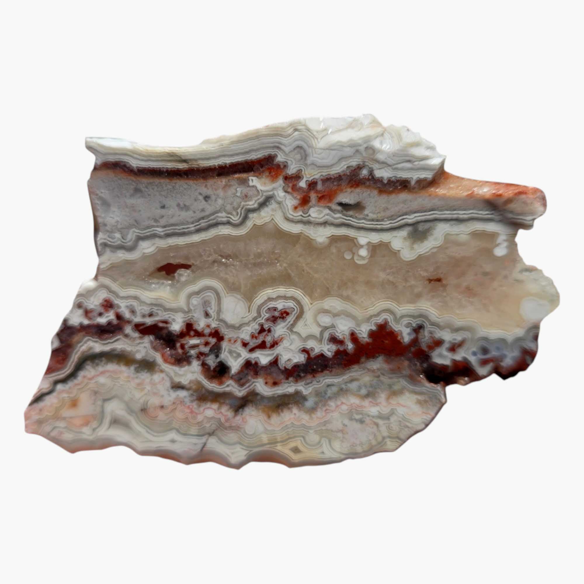 Discover this unique slab of Old Vein Crazy Lace Agate, also known by collectors as Bubble Lace. This material comes from a retapped historic vein in Mexico and is prized for its dramatic, chaotic lace patterns and scene-like formations. It's a must-have for lapidary artists, collectors, and anyone seeking rare Crazy Lace Agate for cabbing or display.
