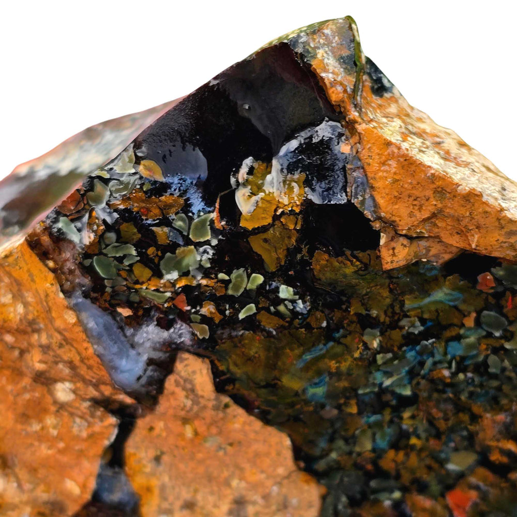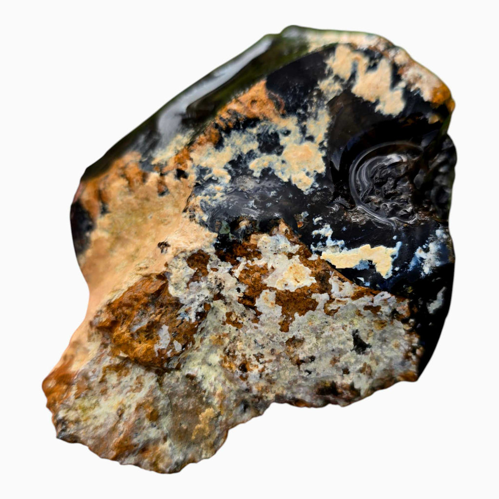 Whisky Creek Jasper can be sensitive to the direction you cut it, producing different type of orb like pattern depending on the direction. It tends to be pretty solid, and takes a fantastic mirror polish. It is loads of fun to work with, and being a tough one to mine, it is incredibly hard to aquire! We personally love rustic smoky scenes that Whisky Creek Jasper can produce. It is such a unique and gorgeous stone!