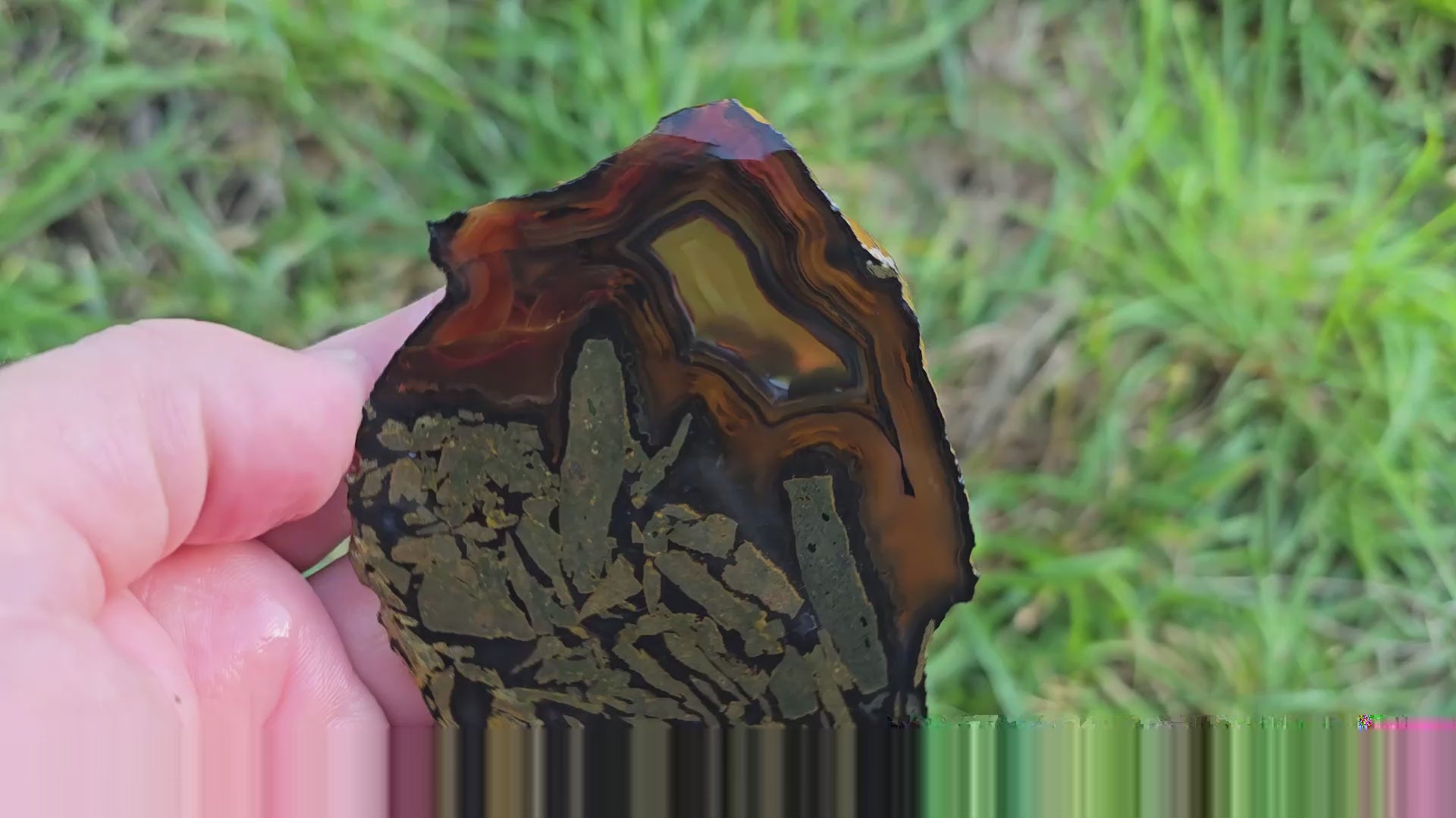Piranha Agate Slab – Orange and red banding – Brazilian variety