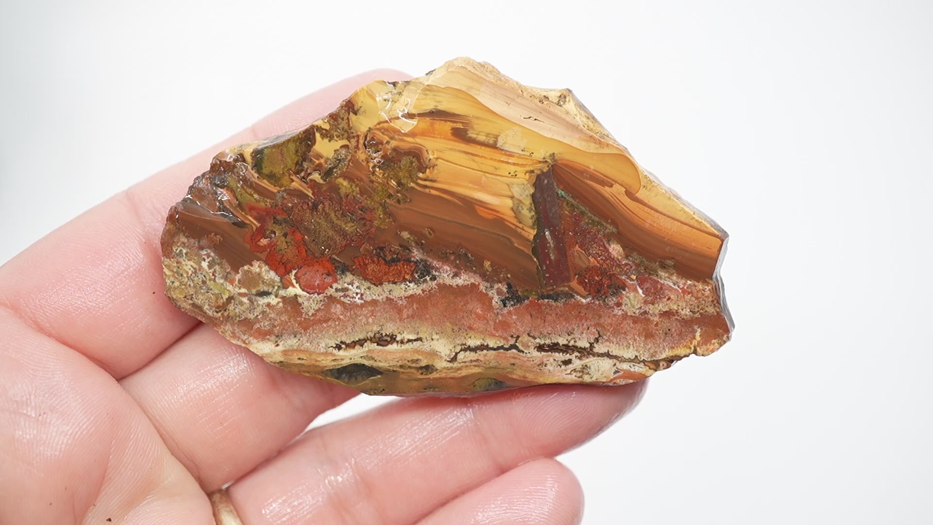 This slab combines both Rim Jasper and moss agate in a single piece - a two-for-one specimen from the legendary Quant Family deposit. The ultra rare status of this exhausted material makes every slab a collector's prize.