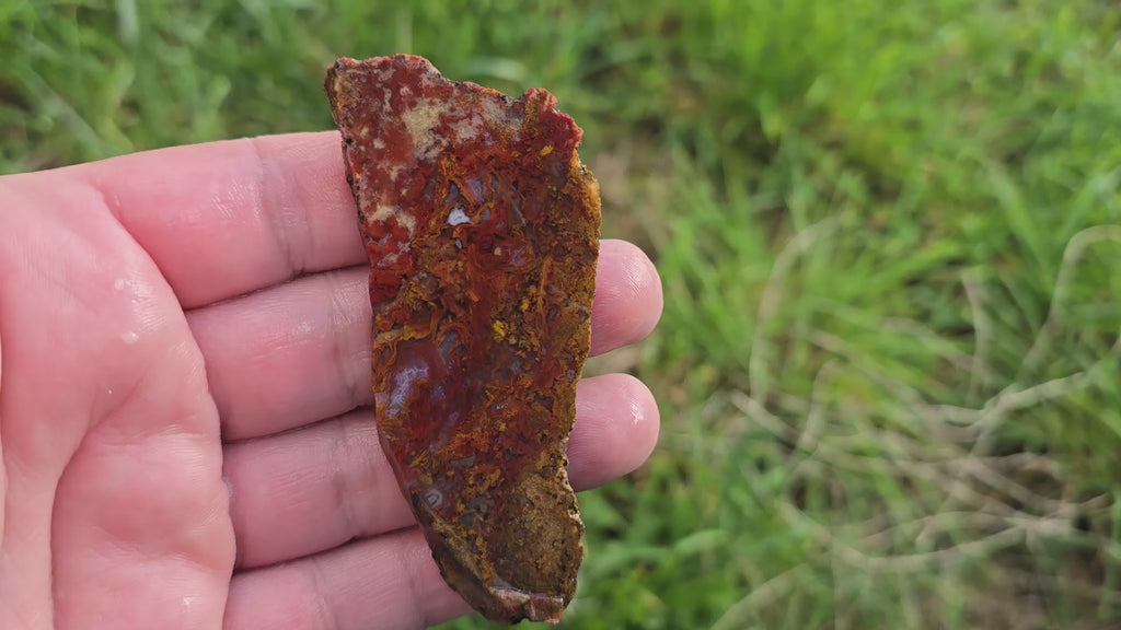 San Carlos Agate Slab – Bright Red Moss with Blue – Mexican Moss Variety