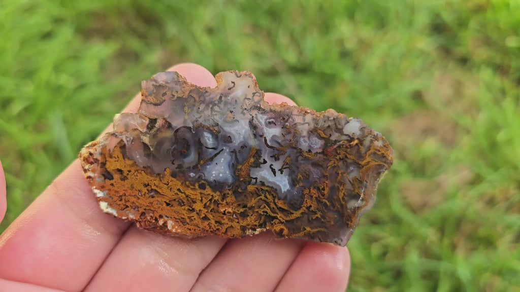 San Carlos Agate Slab – Blue with Orange Moss and Dark Streamers – Newer Discovery Mexico