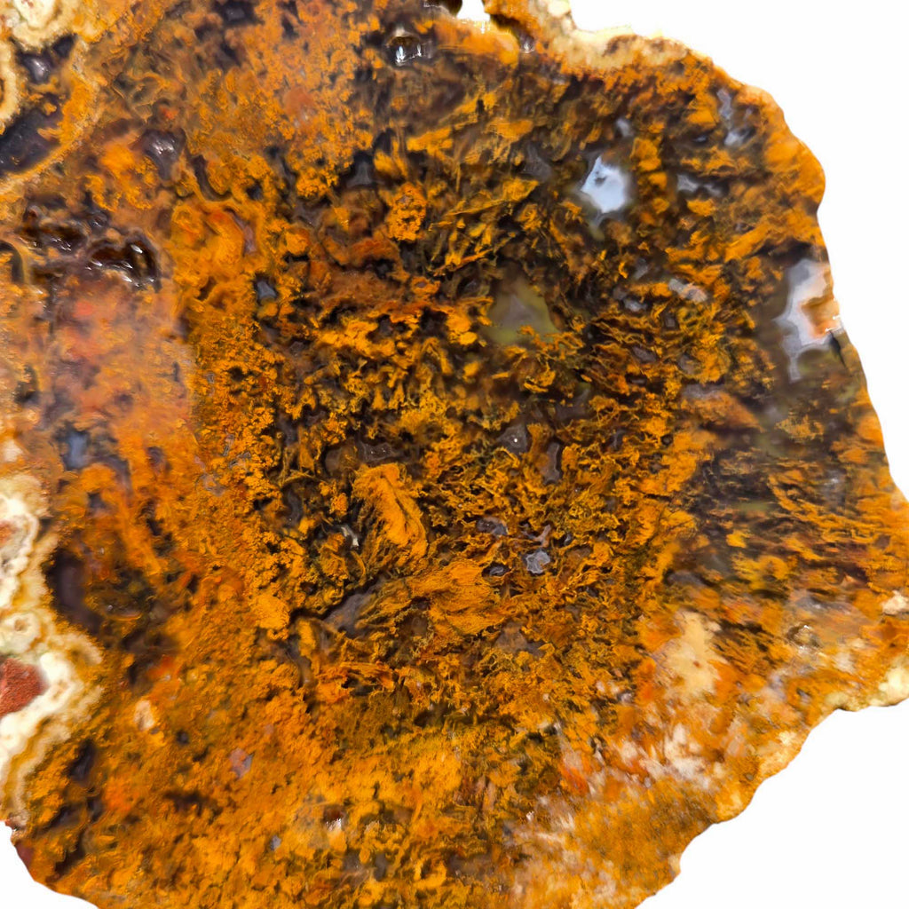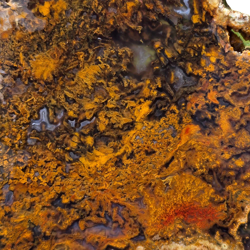 San Carlos Agate is an exciting new variety of moss agate recently discovered near San Carlos, Mexico. This fresh material is making its debut in the lapidary world and is already turning heads with its vibrant coloration and intricate, well-defined moss inclusions.