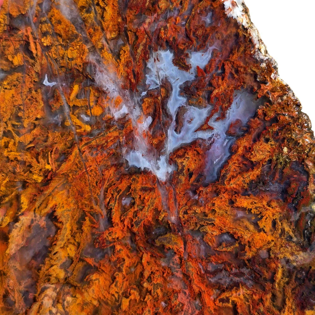 San Carlos Agate is a stunning moss agate near San Carlos, Mexico. This is a somewhat newer discovery, with gorgeous rough just now hitting the market. So far, with our cutting, we have been immensely enjoying this stone, as it has some well-defined moss with gorgeous coloration. It also appears it will take a nice polish.