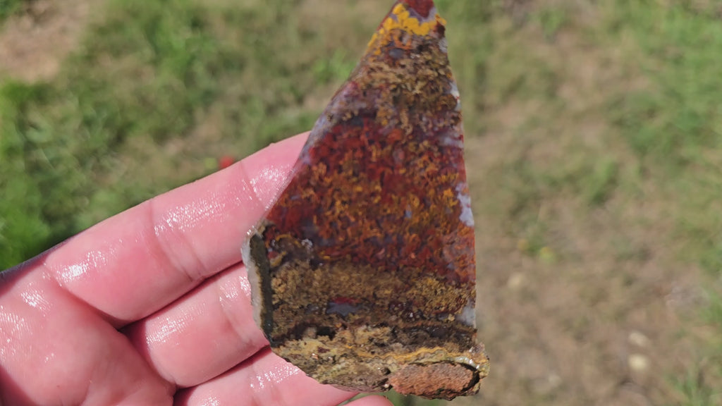 A premium San Carlos Agate slab with vivid red moss and striking contrast—perfect for both cabbing and display.