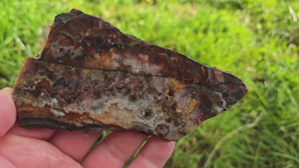 Old stock Sarape Jasper from Mexico showcasing wild crazy lace patterns with sharp zigzag formations. This prime example demonstrates the exceptional beauty this Mexican material can achieve and should take an excellent polish.