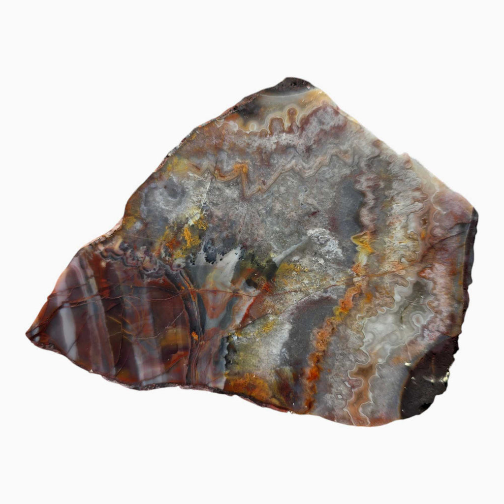 Sarape Jasper shares visual similarities with Crazy Lace but has its own distinct characteristics. Its higher iron content contributes to the bold red and black coloration, while its silicated makeup ensures excellent durability for cutting and shaping. It’s a favorite among lapidary artists thanks to how easily it cuts and how beautifully it polishes to a high gloss.