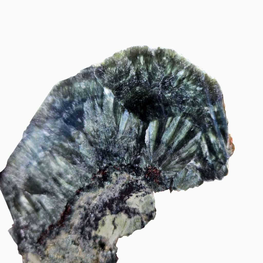 Despite these traits, its velvety luster and feather-like inclusions make it a prized material for cabochons, jewelry, and display specimens. Its unique appearance, reminiscent of wings or flowing feathers, continues to captivate both collectors and lapidary artists worldwide.