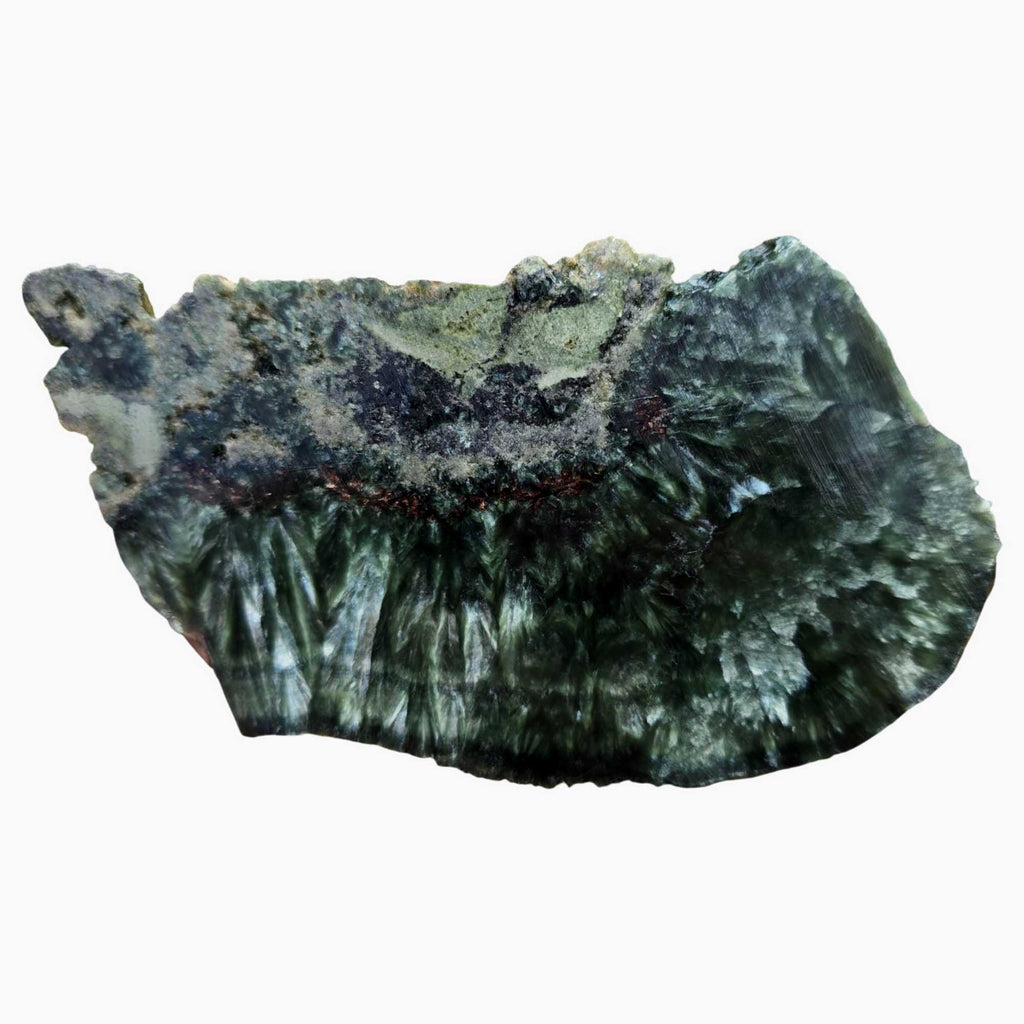 Despite these traits, its velvety luster and feather-like inclusions make it a prized material for cabochons, jewelry, and display specimens. Its unique appearance, reminiscent of wings or flowing feathers, continues to captivate both collectors and lapidary artists worldwide.