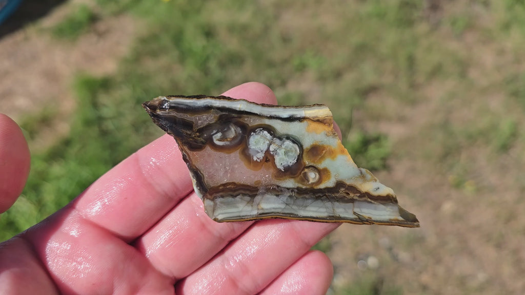 Tahoma Agate is a rare seam agate from Washington State, long considered a classic among collectors and rockhounds. It is found near Mount Rainier in the Snoqualmie-Baker National Forest, a remote and challenging location to access. Reaching the original site reportedly required shimmying along a cliffside, adding to its rarity and mystique.