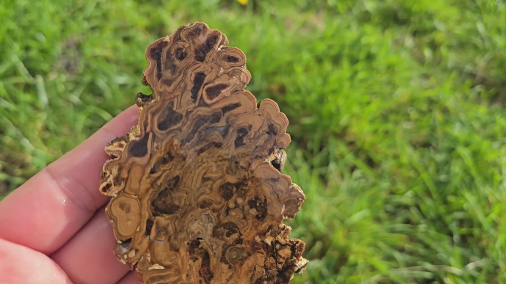 Wyoming Fossil Stromatolite is a remarkable fossil material from the Green River Formation in Wyoming. This ancient stone preserves colonizing bacteria, often of the species Chlorellopsis coloniata, which captured unique layers of geological history during formation. Over millions of years, this bacterial colony fossilized into lapidary-grade jasper, creating a stunning stone that combines paleontological significance with workability.