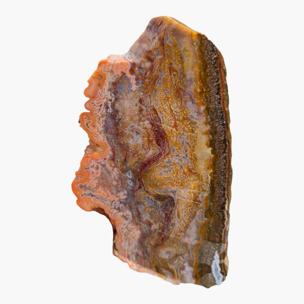 Collected near the renowned Laguna Agate deposit, Agua Nueva is known for its excellent polishability and structural integrity. This piece has great visual contrast and a well-balanced composition—making it ideal for high-end cabbing, jewelry, or display. The pastel fortifications add softness and elegance, while the moss creates organic, earthy movement.