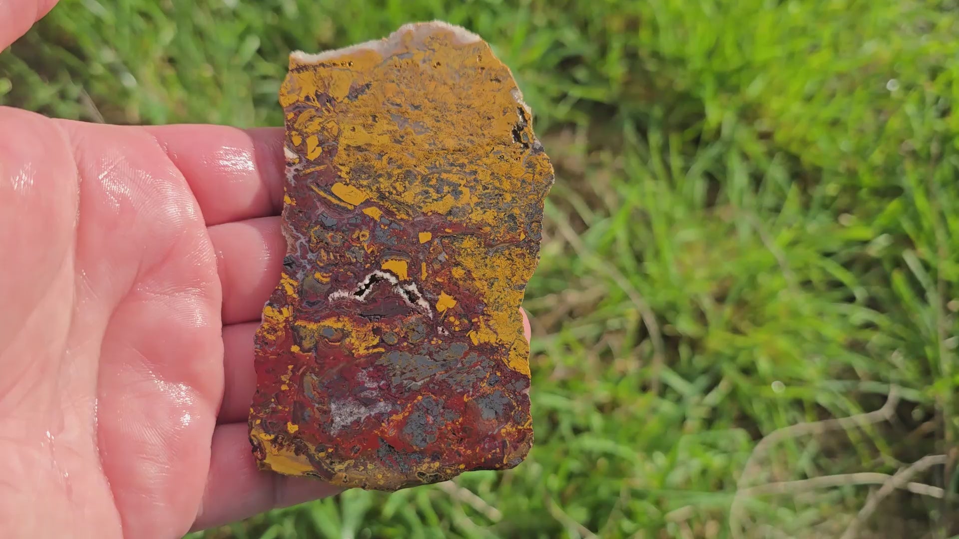 Apple Valley Jasper Slab - Hematite Flowers - Red Gold Stromatolite