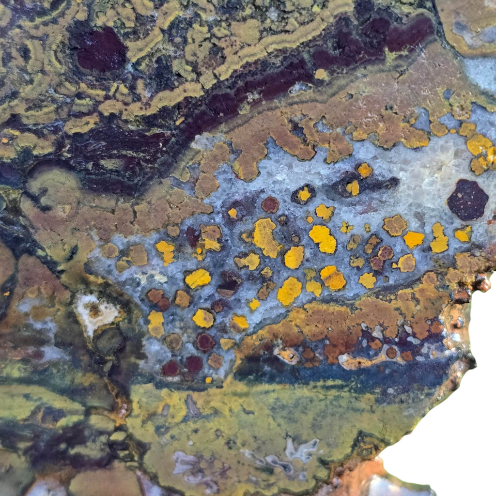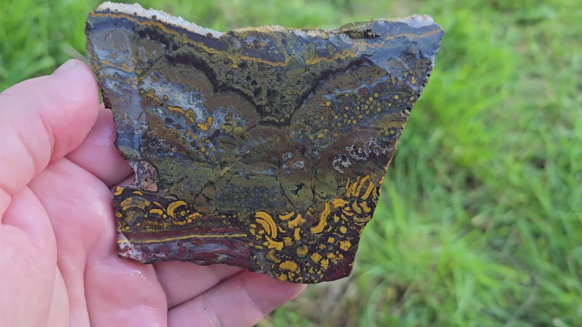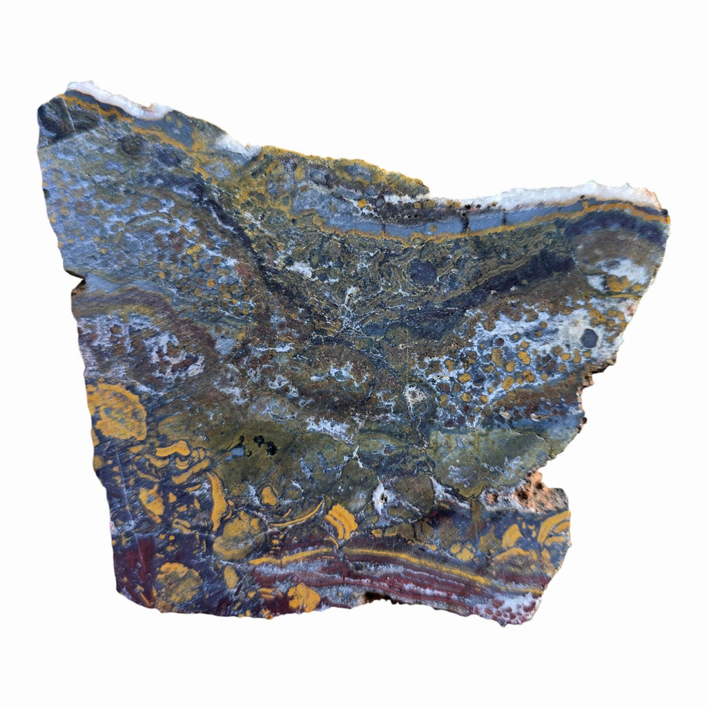 The jasperized shell features and devils toenails patterns in this piece add exceptional character. The combination of fossil interest and lapidary quality makes this perfect for unique cabochons or display.