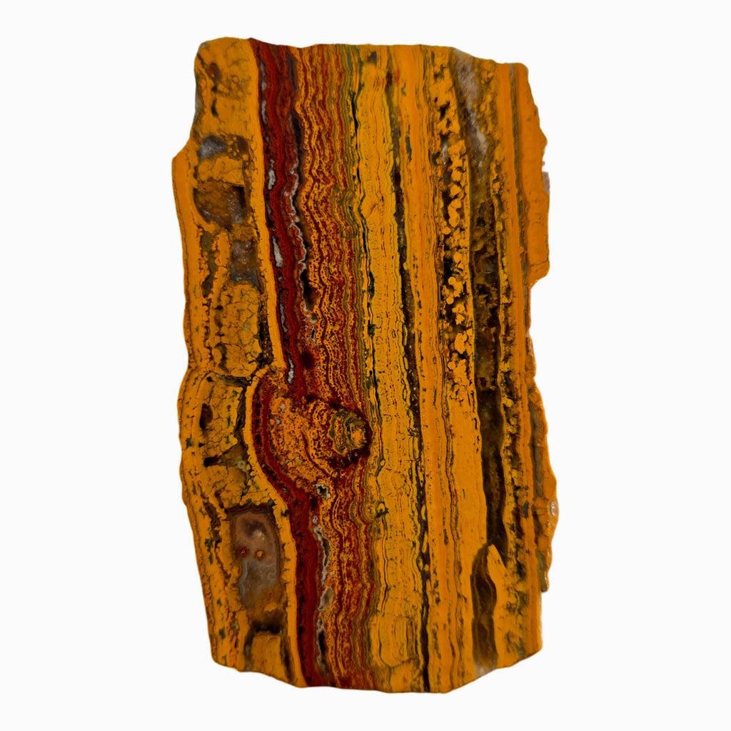 Apple Valley Jasper comes from the same Sahara Desert location as Apple Valley Agate but is actually a fossil stromatolite, making it a fascinating specimen for fossil collectors. Stromatolites formed from cyanobacteria colonies trapped in sediment layers and are among Earth's earliest known fossils, dating back billions of years. This stromatolite jasper commonly shows bright reds with distinct banding and can feature hematite flowers that create eye-catching cabochons.