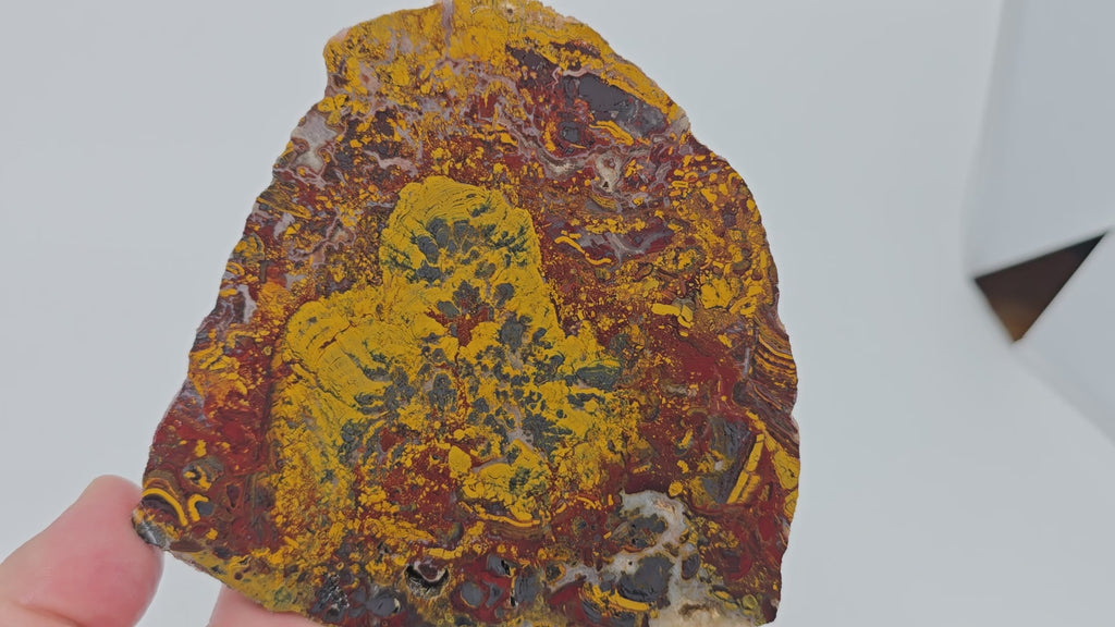 Apple Valley Jasper Slab - Hematite Flowering with Fossil Oysters - Sahara Morocco