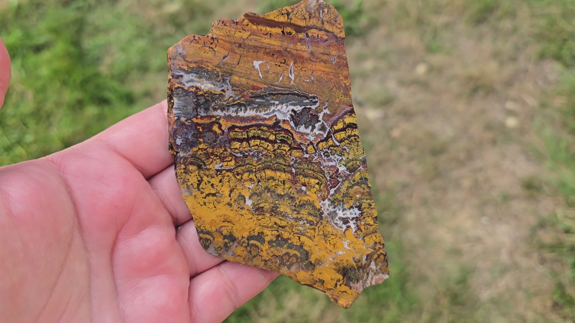 Here is a gorgeous Apple Valley jasper slab showing some really prime hematite flowers and patterns. This one is going to make such beautiful cabochons from this billion-year-old fossil. This super rare material features exceptional patterns and should take a quality polish.