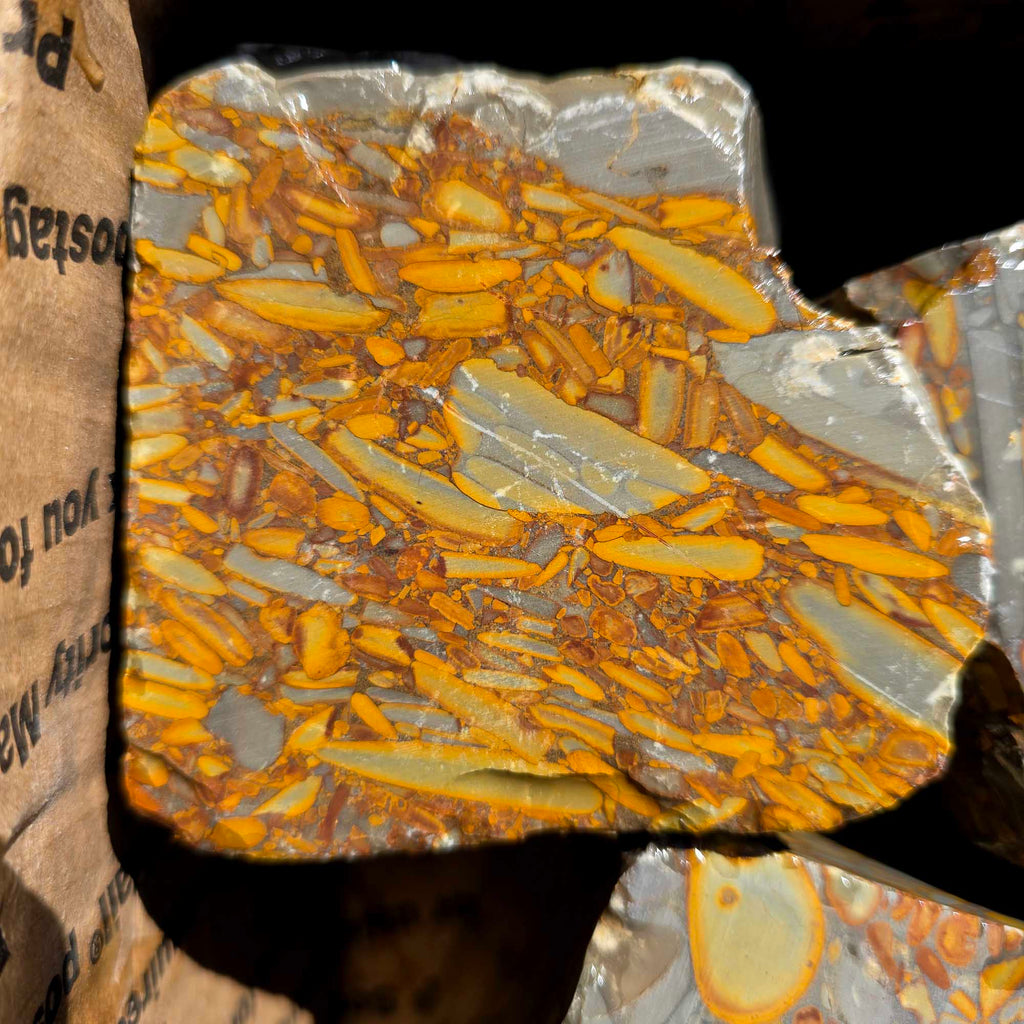 Photos: All photos are taken wet to show potential color and pattern once polished. This material is not polished.