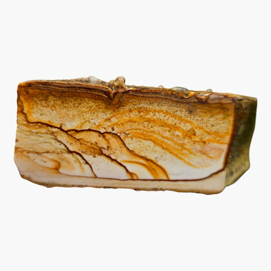 Chicken Track Jasper is an old stock Jasper, and is believed to have been fossil worm tunnels. It has some awesome pattern and colors, and can be a picture jasper when cut right. This stunning material is a pretty neat one, and it gets its name from the worm tunnels on top; often resembling chicken tracks.