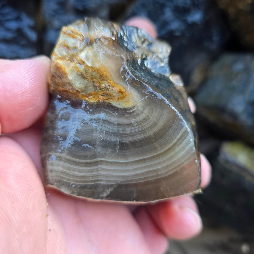 Chinese Rainbow Fluorite is somewhat newer to the market but quickly became popular due to its excellent ability to hold color and designs through cutting. It works fairly easily, though it does take some experience to get a nice shine, as fluorite tends to work differently than most other stones. Chinese Rainbow Fluorite often has multiple layers of colors with the potential of some fluorite crystal designs within.