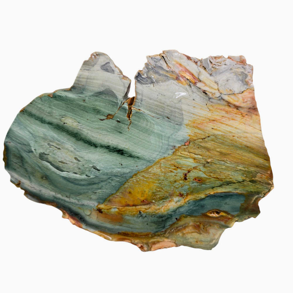 Gary Green Jasper is a world-famous Jasper dug in Oregon. Gary Green has been on the market for decades and is a high-quality jasper that takes an excellent shine and works into some gorgeous cabochons. It goes by multiple names; Gary Green, Larsonite, and by the latest miners, Freedom Jasper. It has been speculated to be a bog wood, as structures that look like limbs have twigs have been found, however, the current miners say they have had it analyzed and no organic matter was found, and the structure of the deposit shows it is more metamorphic in nature. Gary Green is certainly a stunning jasper you won't want to miss out on.