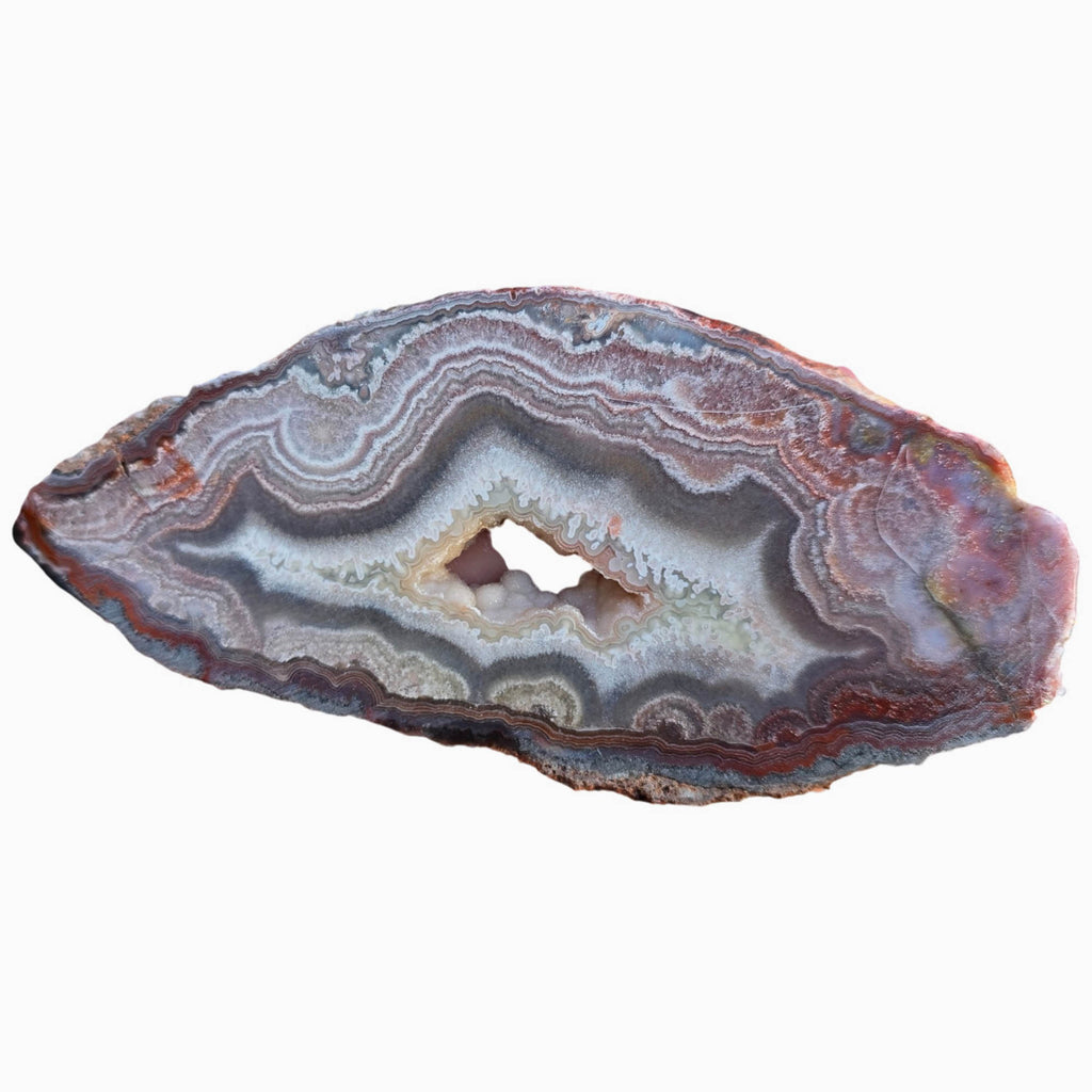 Flor de Durazno Lace Agate Slab - Lace Circling Frosty Druzy Cavern - Last Chunk Mined
