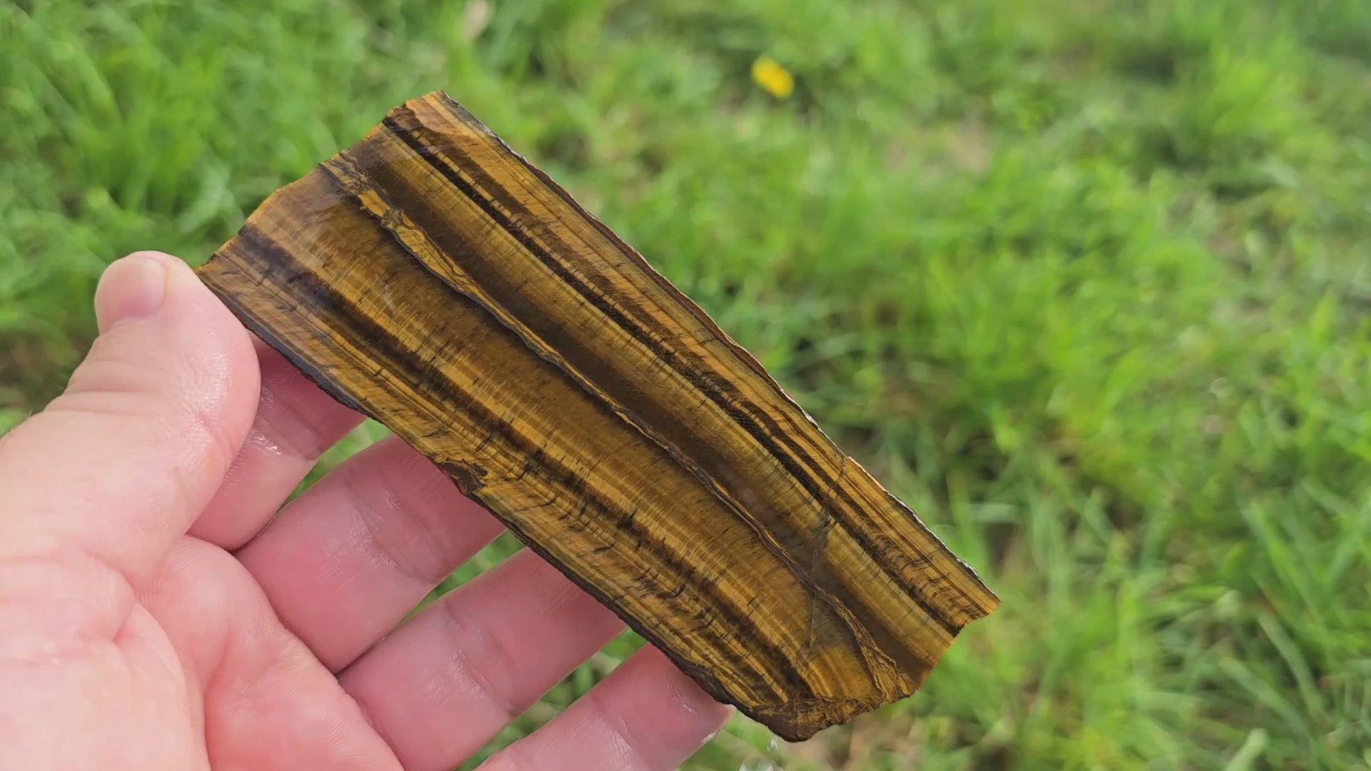 Golden Tiger Eye Slab - Double Chatoyant Bands with Hematite