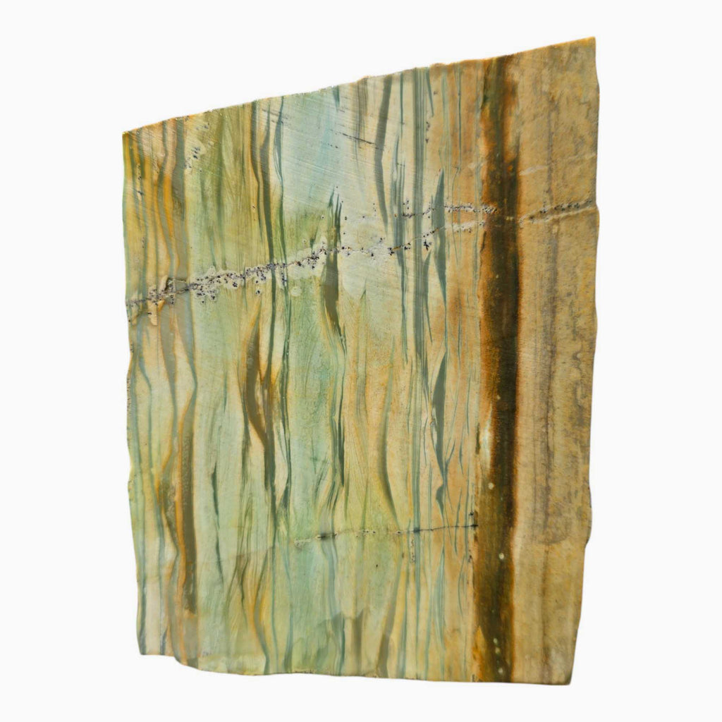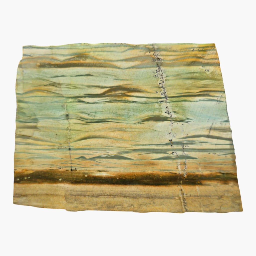 This is a stunning slab of Old Stock Gunnery Point Jasper from Arizona, and one of the finest examples we’ve encountered. The slab features a beautifully scenic pattern reminiscent of ocean waves gently lapping onto a calm beach—rich in movement, color, and natural artistry.