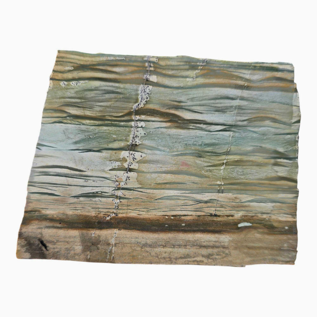 Slabs are typically photographed wet to simulate the appearance they will have when polished. This helps showcase the true color, pattern, and potential of the material. The final photo in each listing is usually taken dry to help you examine the natural surface for fractures, pits, or other imperfections. Please review all photos carefully before purchasing.